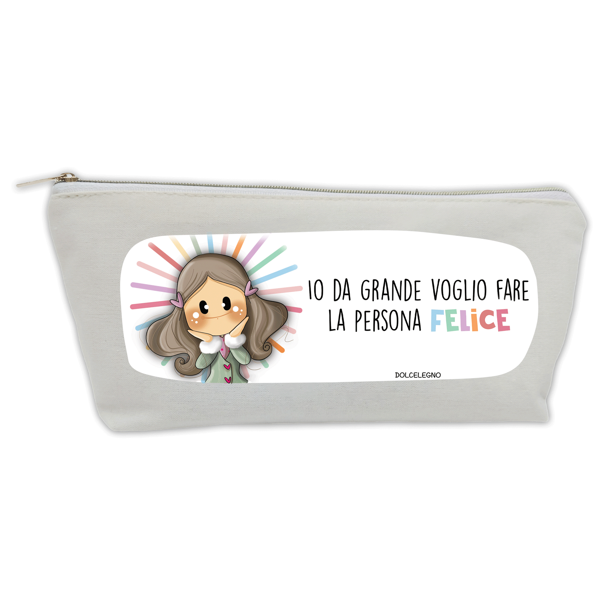 Bustina in tessuto delle Bubine con fodera interna a righe bianche e rosa.