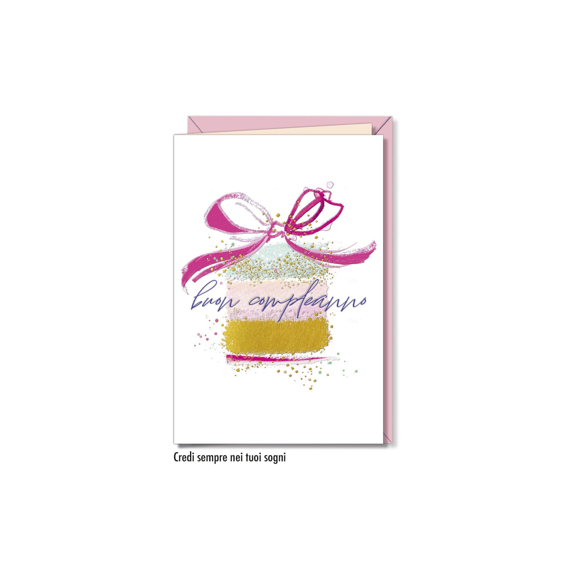 Il biglietto è decorato in prima pagina da oro e rilievi