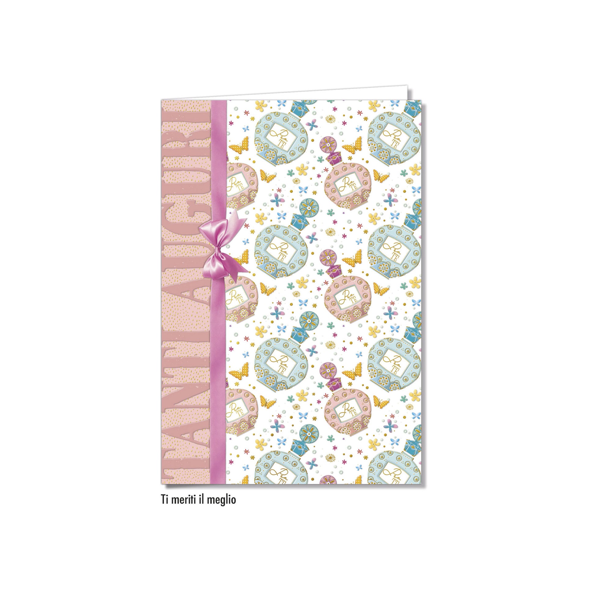 Il biglietto è decorato in prima pagina da oro e rilievi