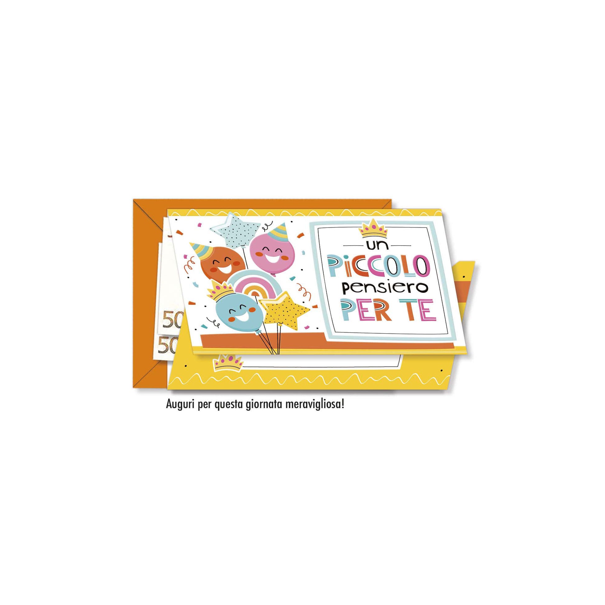 Biglietto d'auguri compleanno con bustina interna porta euro