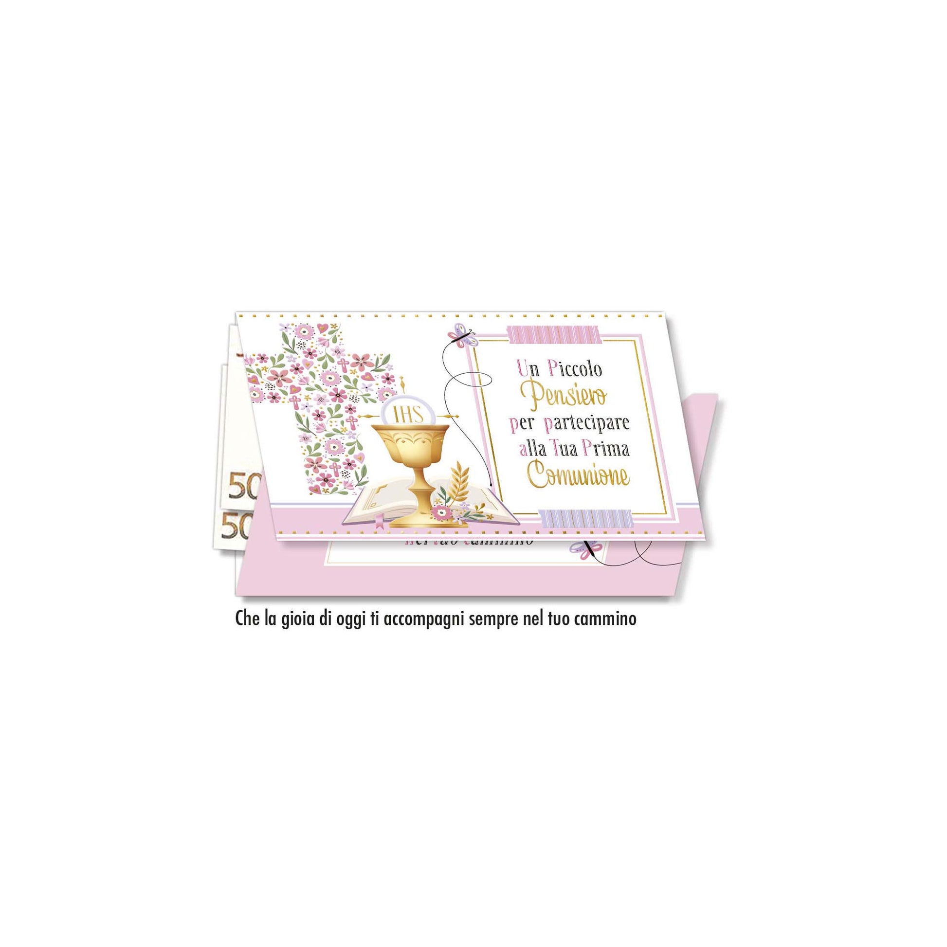 Biglietto d'auguri per festeggiare la Prima Comunione con bustina portasoldi