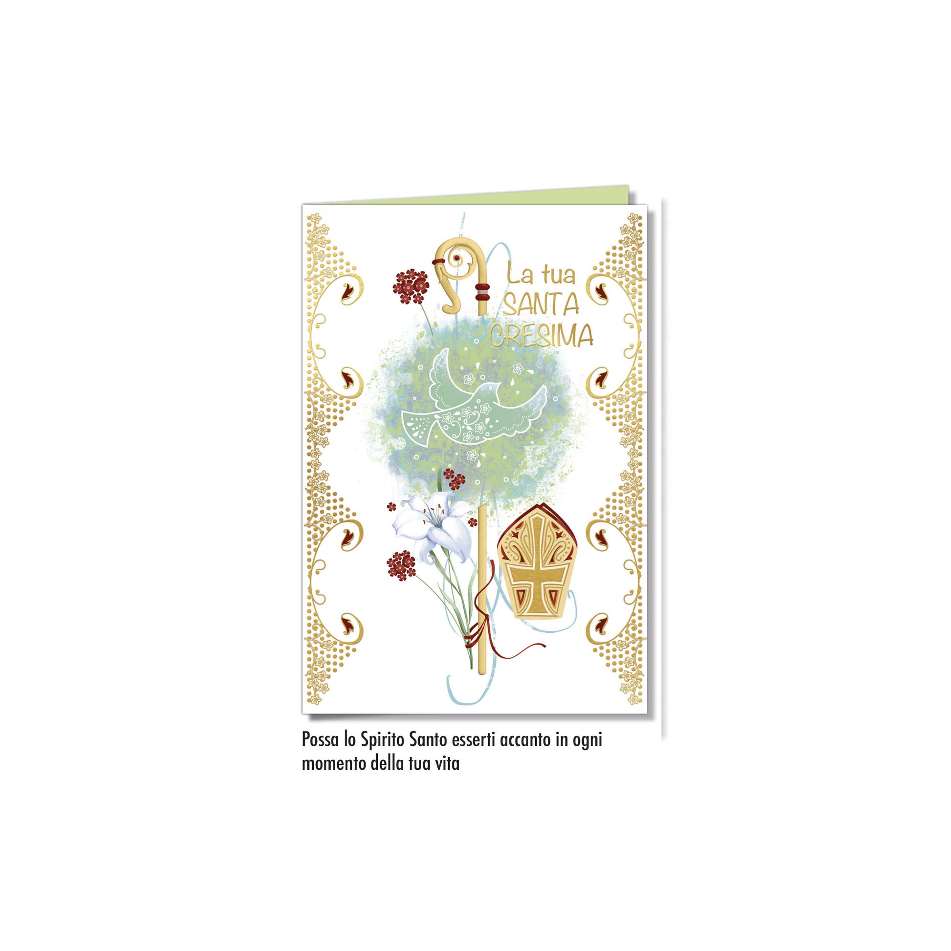 Il biglietto è decorato in prima pagina con ori e rilievi