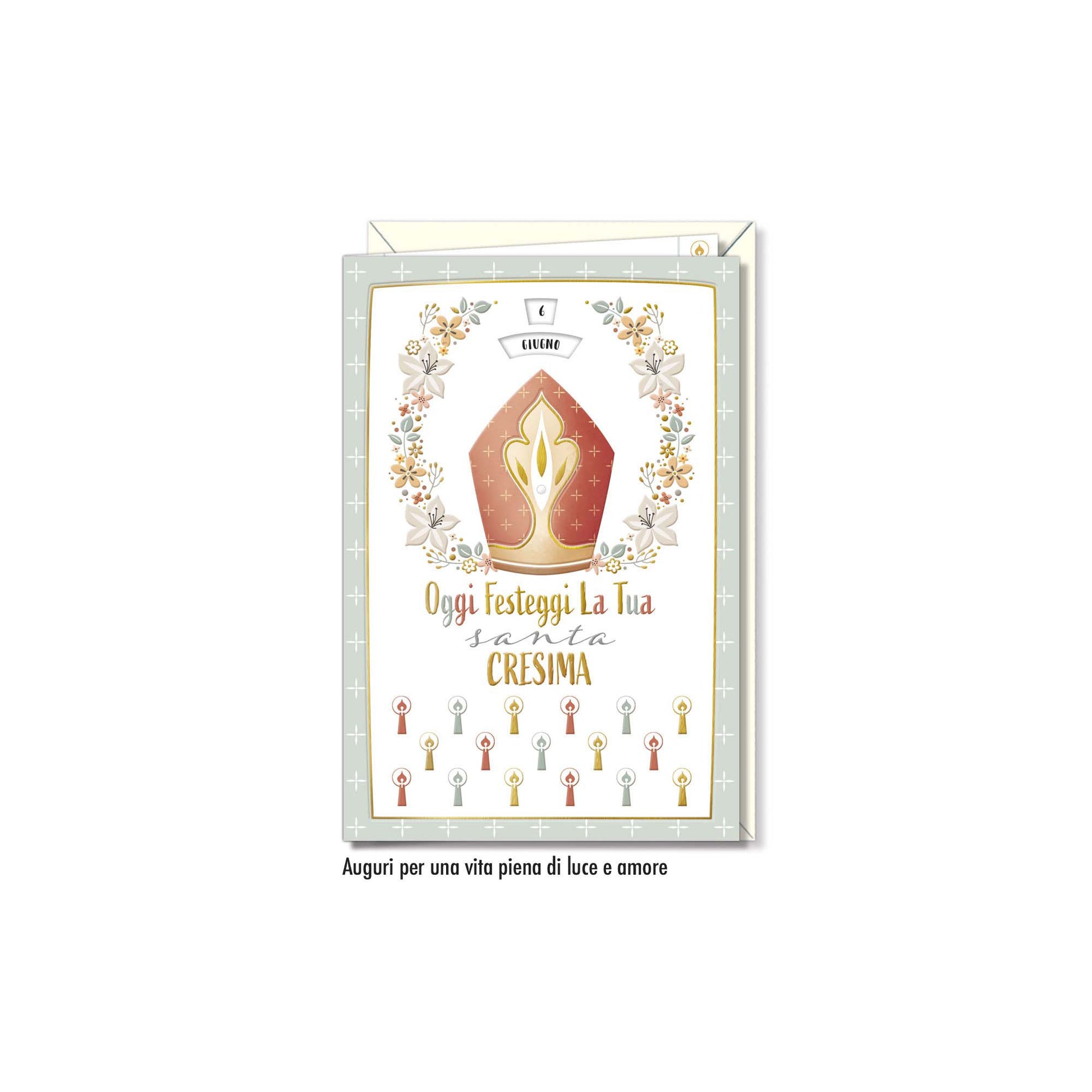 Biglietto d'auguri per festeggiare la Cresima con doppia rotella giorno e mese