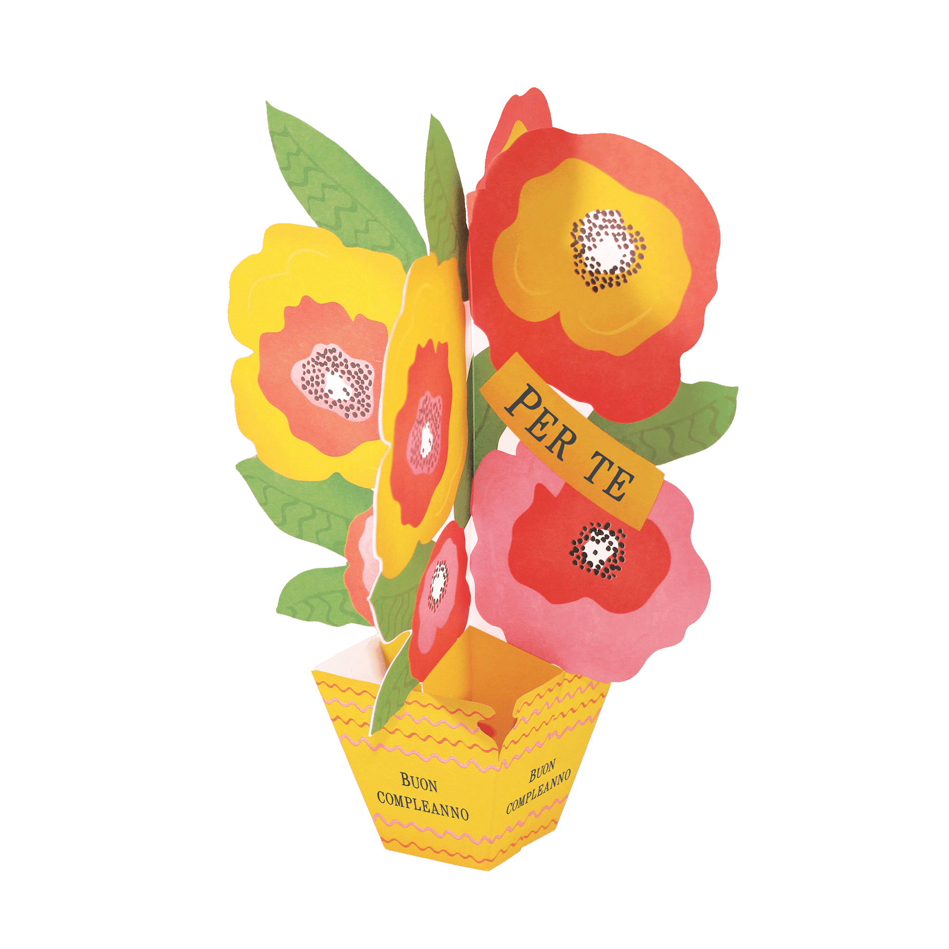 Biglietto d'auguri pop up 3D grande con busta colorata coordinata.