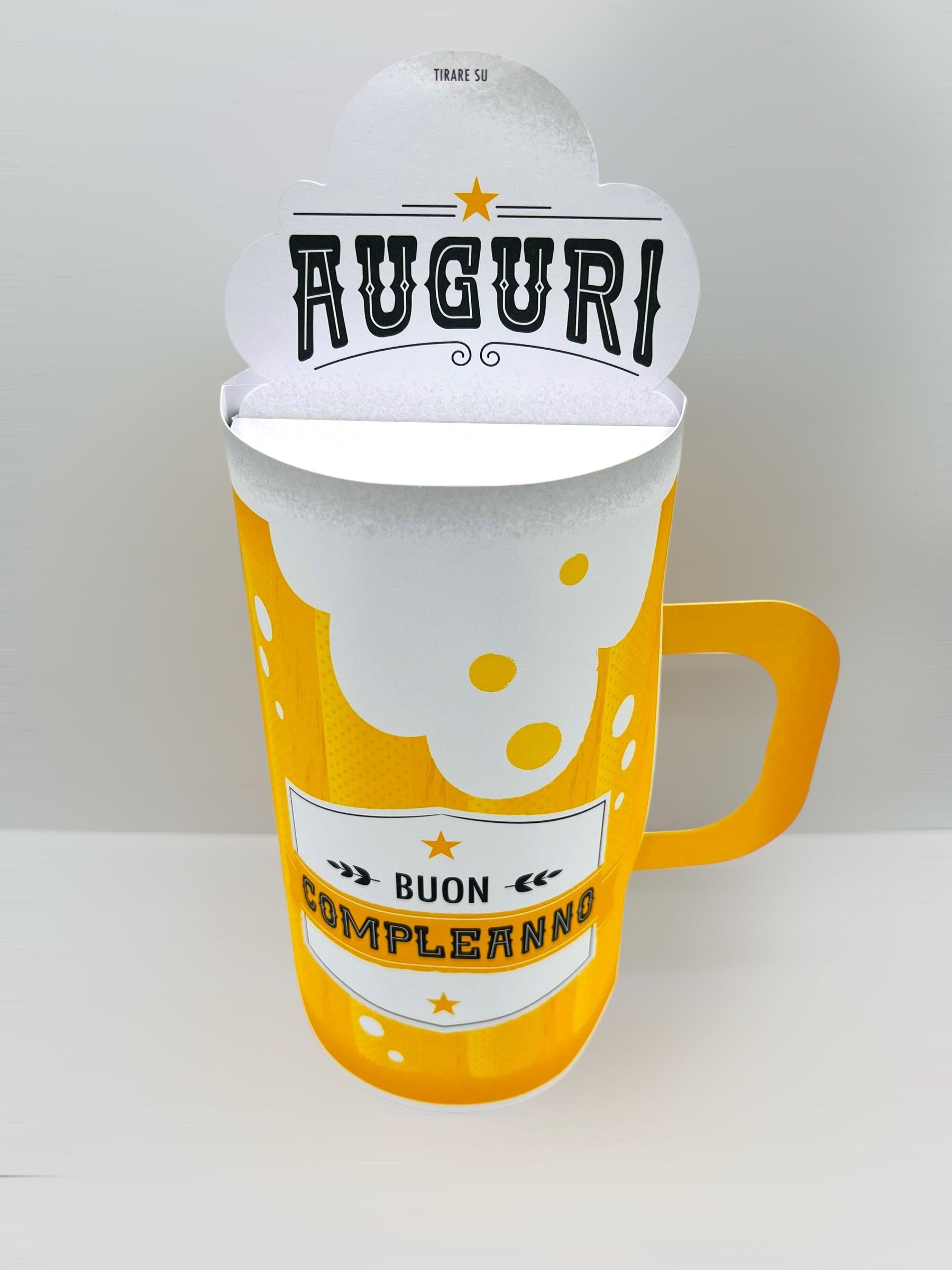 Biglietto d'auguri pop up 3D grande con busta colorata coordinata.